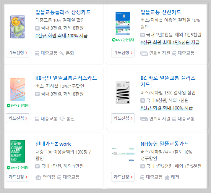 알뜰교통카드의 경우에는 정말 다양한 카드가 존재하며