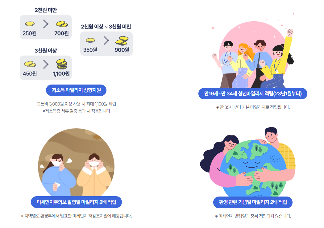 저소득층 서류 제출 시 최대 마일리지를 상향하여 적립할 수 있습니다